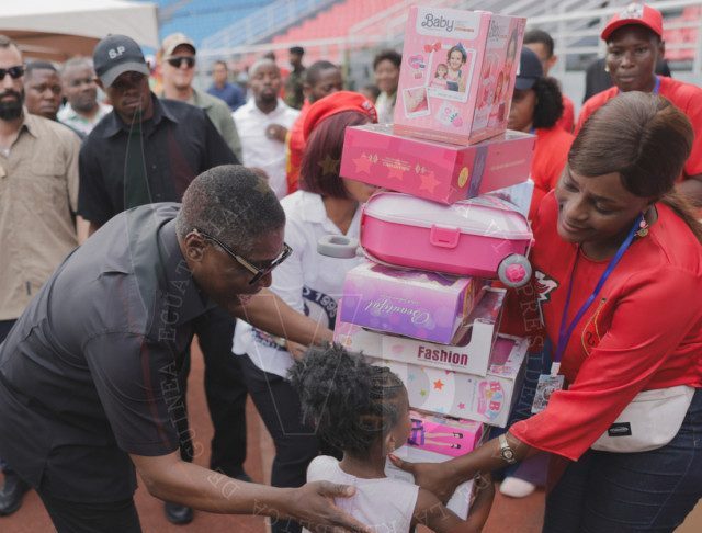 Bata: Nguema Obiang infunde alegría en la masa infantil con el reparto de juguetes.