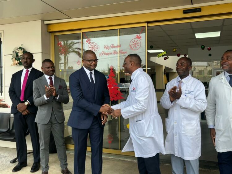 El acto ha sido presidido por el delegado nacional del INSESO, Moisés Angüe Nso Nchama, y ha contado con la presencia de representantes del Policlínico Doctor Loeri Comba, Carlos Martín Eto Alene, personal sanitario y colaboradora del sector salud, en un evento que refleja el carácter institucional y estratégico de la entrega de recursos sanitarios.
