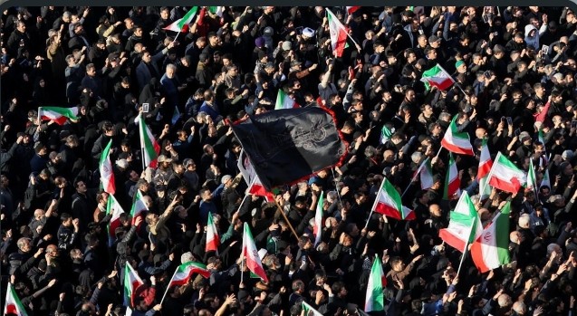 Los medios estatales de la República Islámica anunciaron un período de luto de 40 días y siete días festivos. Mientras en la vecina Irak, el Gobierno decretó tres días de luto. La gente se reúne para lamentar la muerte del líder supremo de Irán, el ayatolá Ali Khamenei, en ataques israelíes y estadounidenses el sábado en Teherán, Irán.