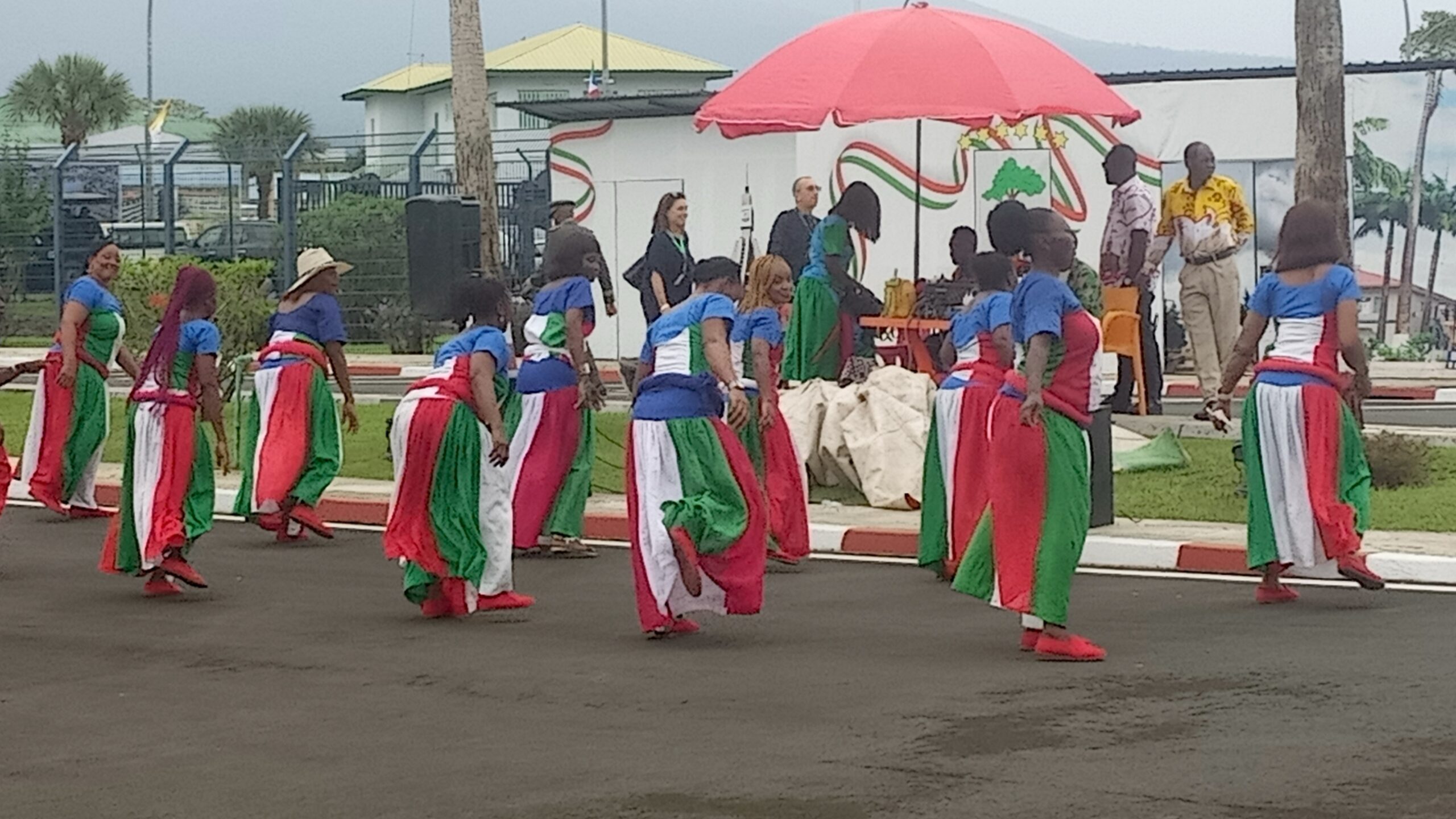 Varios corros de animación y grupos folklores sé hamenizan la explanada de la terminal Presidencial del aeropuerto internacional de Malabo para dar un recibimiento apoteósico al vicario de Cristo en la tierra.